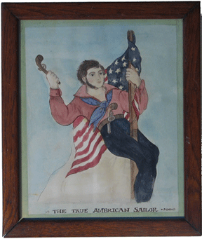 THE TRUE AMERICAN SAILOR Based upon a 19th century Currier and Ives print, this watercolor is a representation of the ideal of the American sailor. In an oak frame. Price and other information available upon request. |